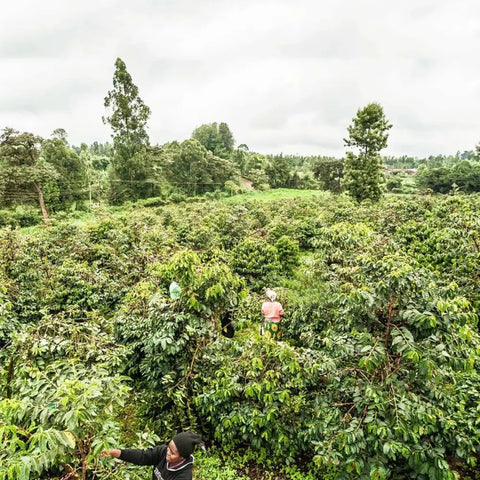 The Kamwangi Coffee Factory is one of the gems of the Ngariama Farmers Cooperative Society in Kirinyaga County. Over 1,000 smallholder farmers bring their hand-picked cherries from family plots nestled between 1,600 and 1,800 meters above sea level.